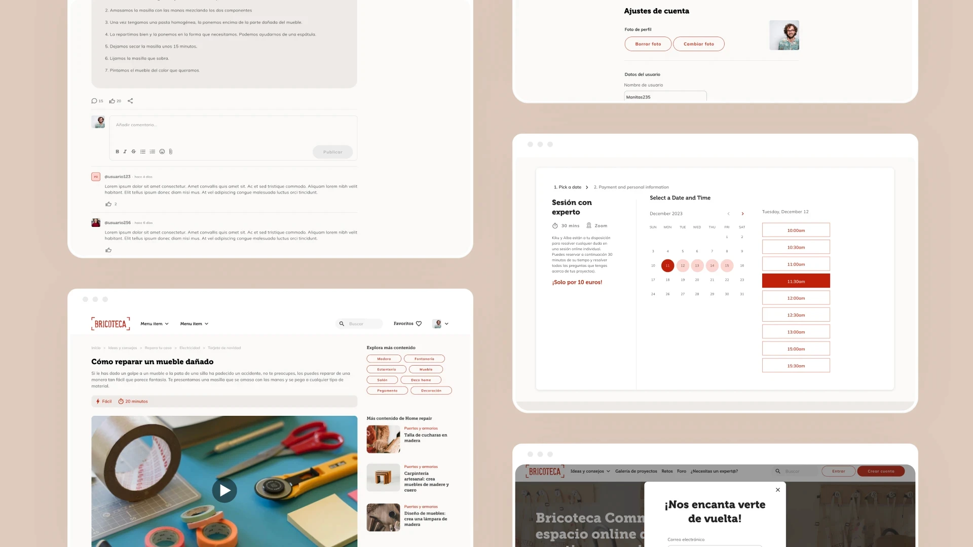 Spanish DIY enthusiasts were using different platforms for different needs with no cohesive home base. Bricoteca had the physical infrastructure, but no digital platform to serve this fragmented audience. The challenge: design a unified platform that becomes the definitive destination for Spain's maker community.